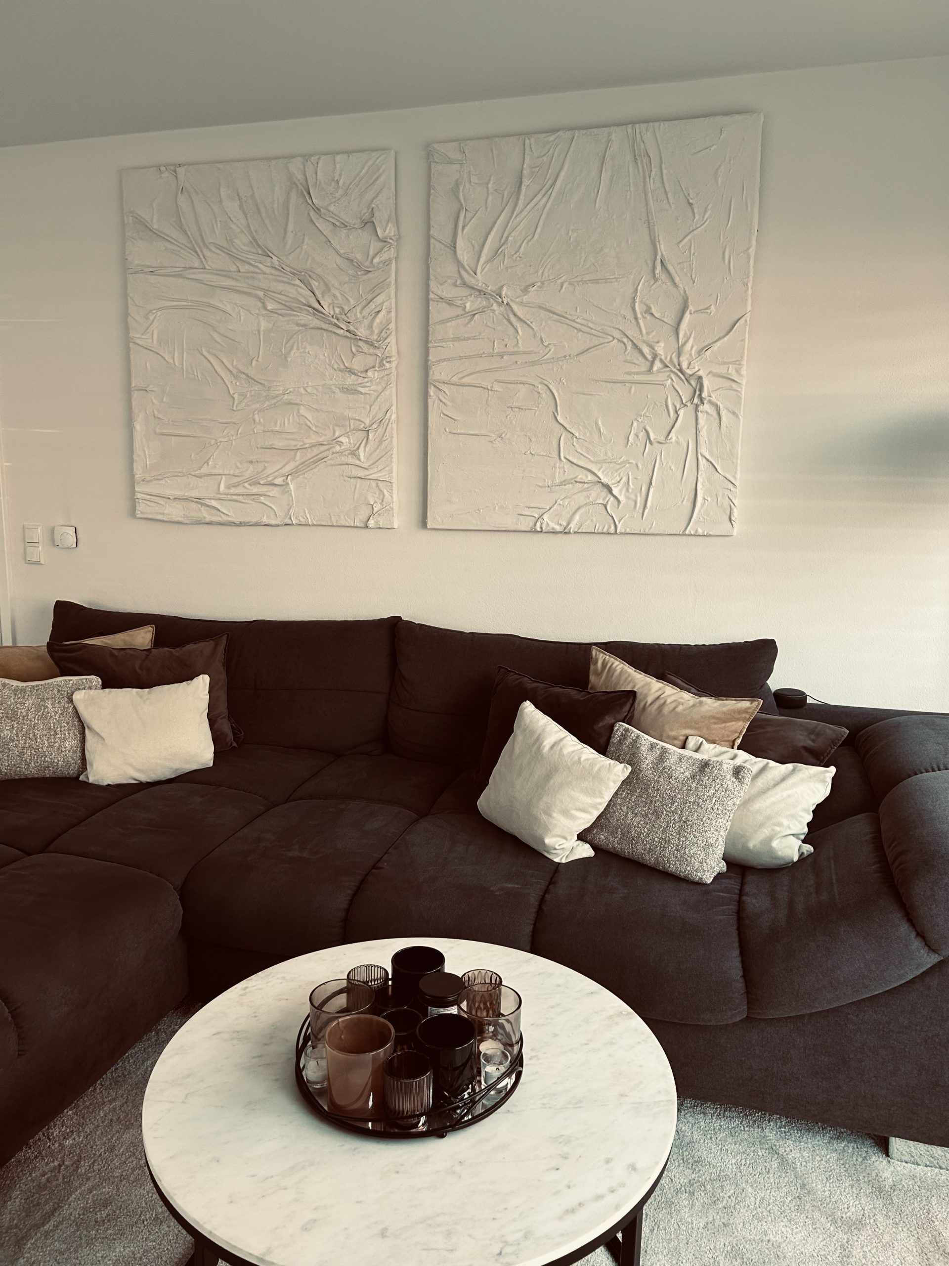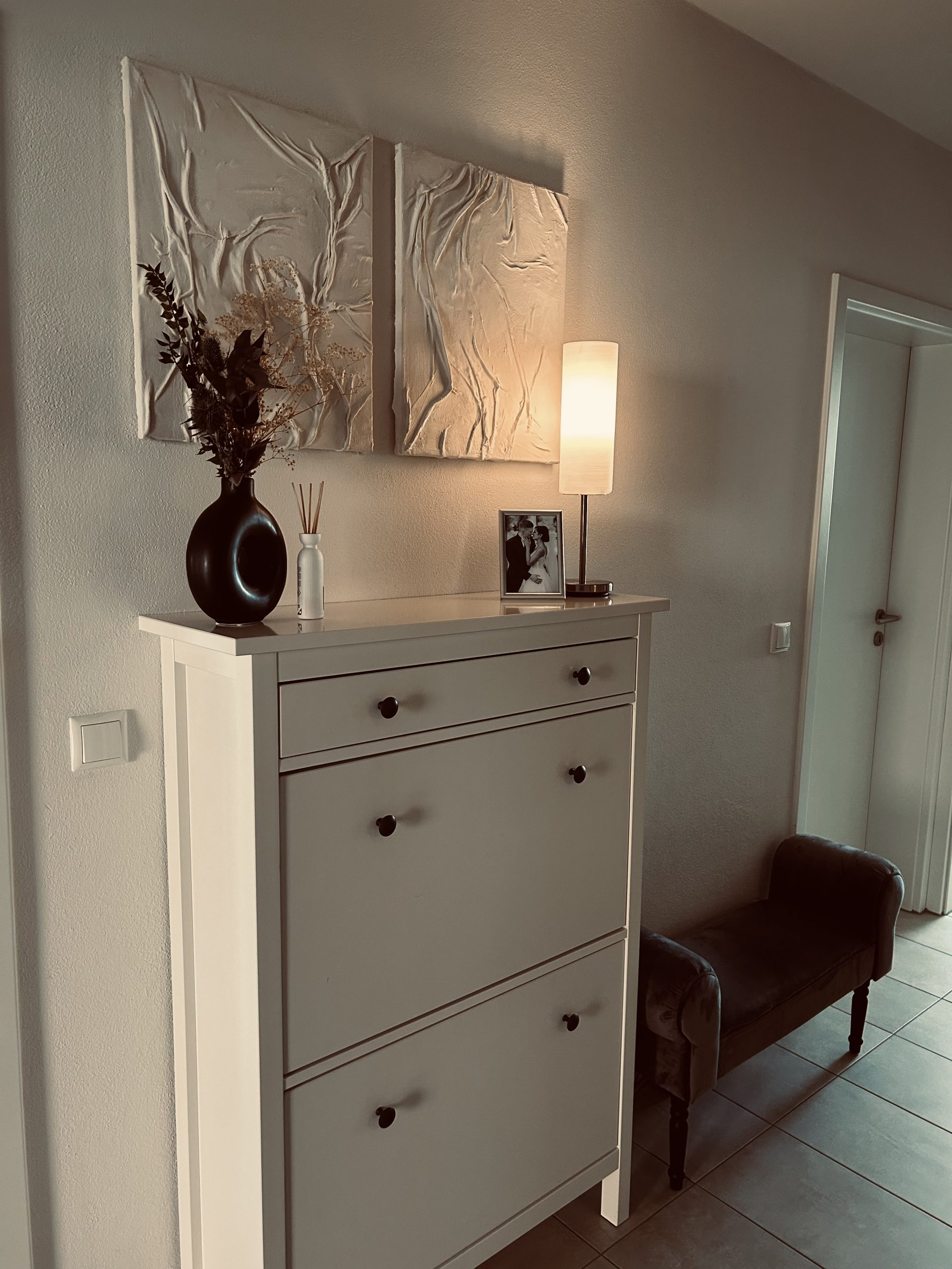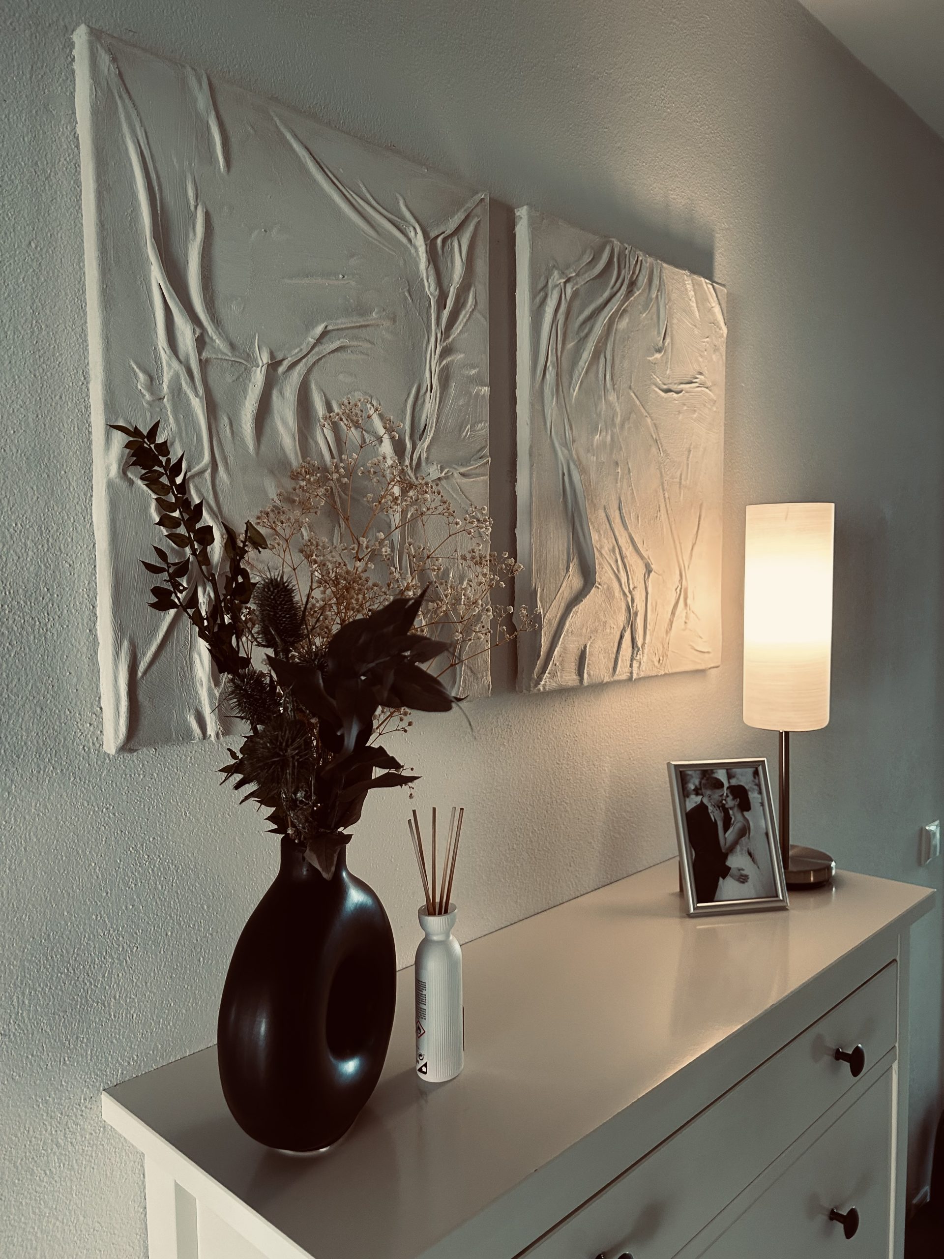 Das hängt von deinem Geschmack und Raumstil ab. Manche bevorzugen das Wohnzimmer, damit ihre Kunstwerke von Gästen gesehen werden können. Andere bevorzugen das Schlafzimmer oder Büro für eine inspirierende Umgebung.